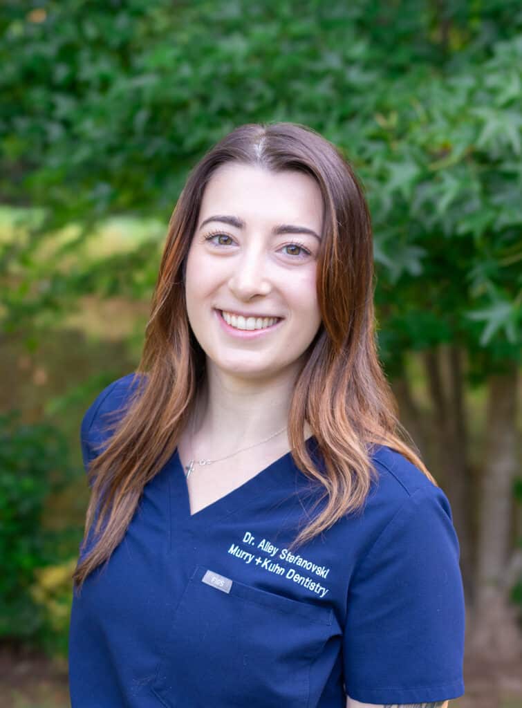 Dr. Alley Stefanovski grew up in Rochester, NY, and played NCAA volleyball while earning her undergraduate degree at Rivier University. She completed her dental degree at Virginia Commonwealth University and went on to pursue a General Practice Residency at UAB Hospital in Alabama, where she focused on managing medically complex cases. She now lives and practices in Richmond.