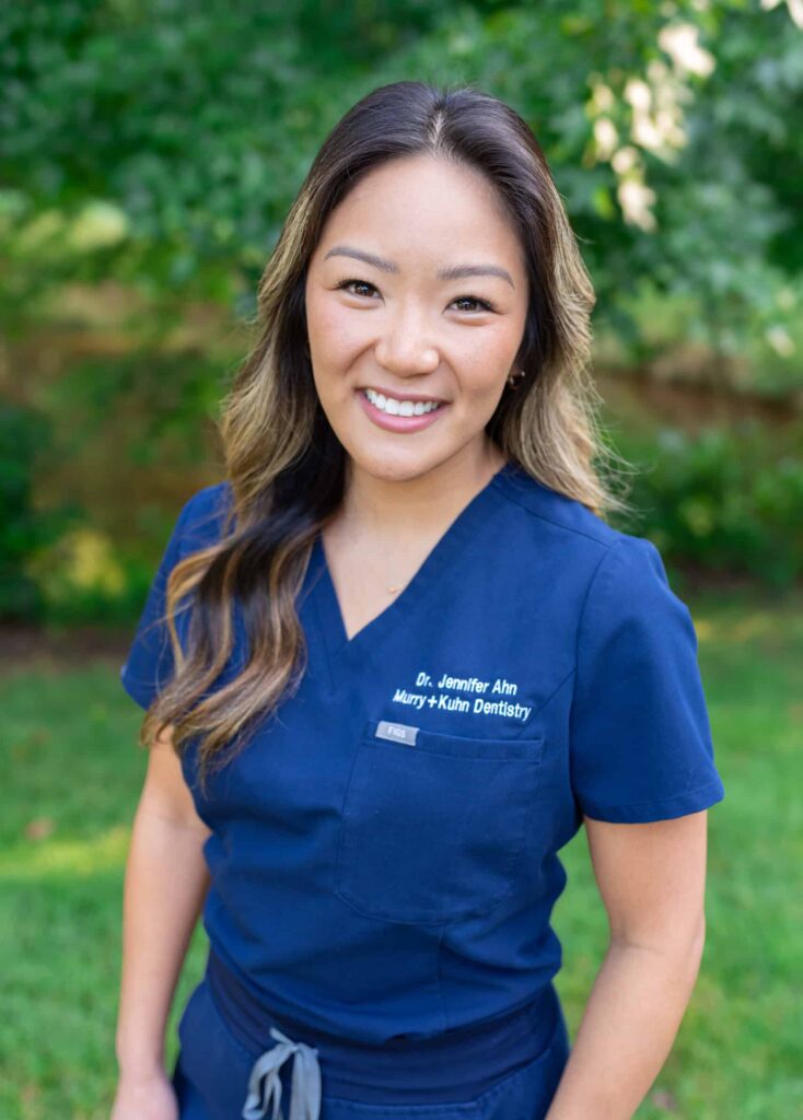 Dr. Jennifer Ahn is originally from Midlothian, VA. She completed her undergraduate degree at the University of Virginia and earned her dental degree from Virginia Commonwealth University, where she graduated as class valedictorian. She completed a residency in San Antonio, TX at the VA hospital, where she gained advanced experience in cosmetic dentistry, implants, endodontics, sedation, and sleep apnea therapy.