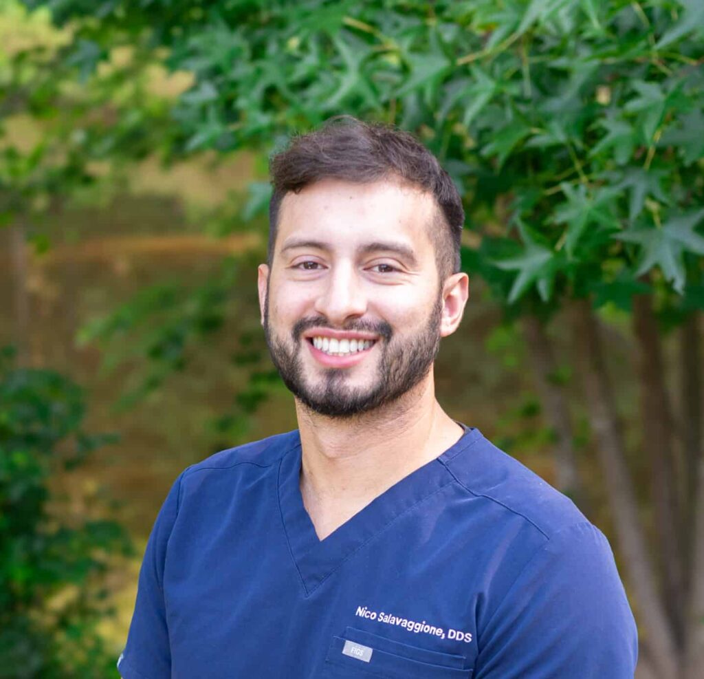 Dr. Nico Salavaggione was born in Buenos Aires, Argentina, and moved to the United States with his family at the age of ten. He began his academic journey by earning a Bachelor of Arts in biology from The Ohio State University, followed by his doctor of dental surgery degree (DDS) from UCLA School of Dentistry.